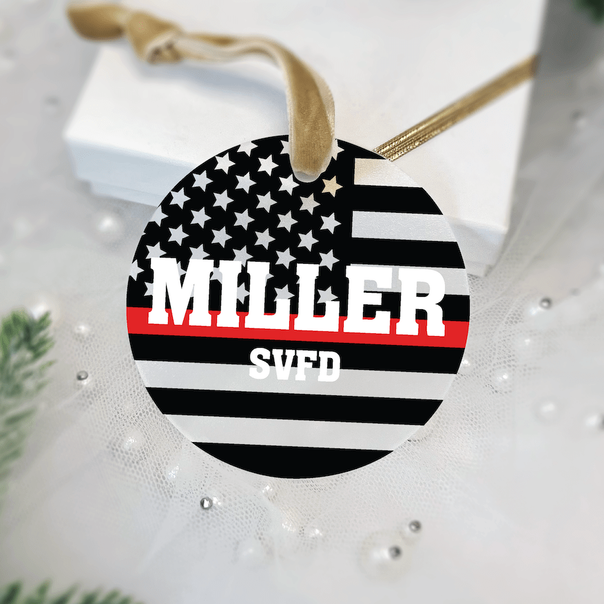 Personalized Firefighter Acrylic Ornament – Thin Red Line Flag