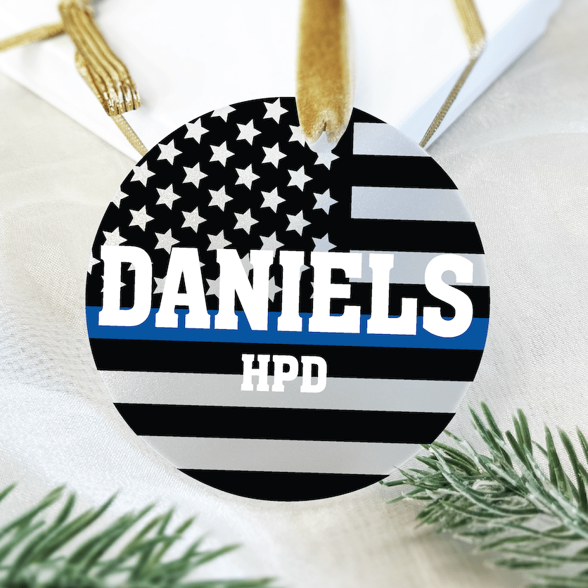 Personalized Police Acrylic Ornament – Thin Blue Line Flag