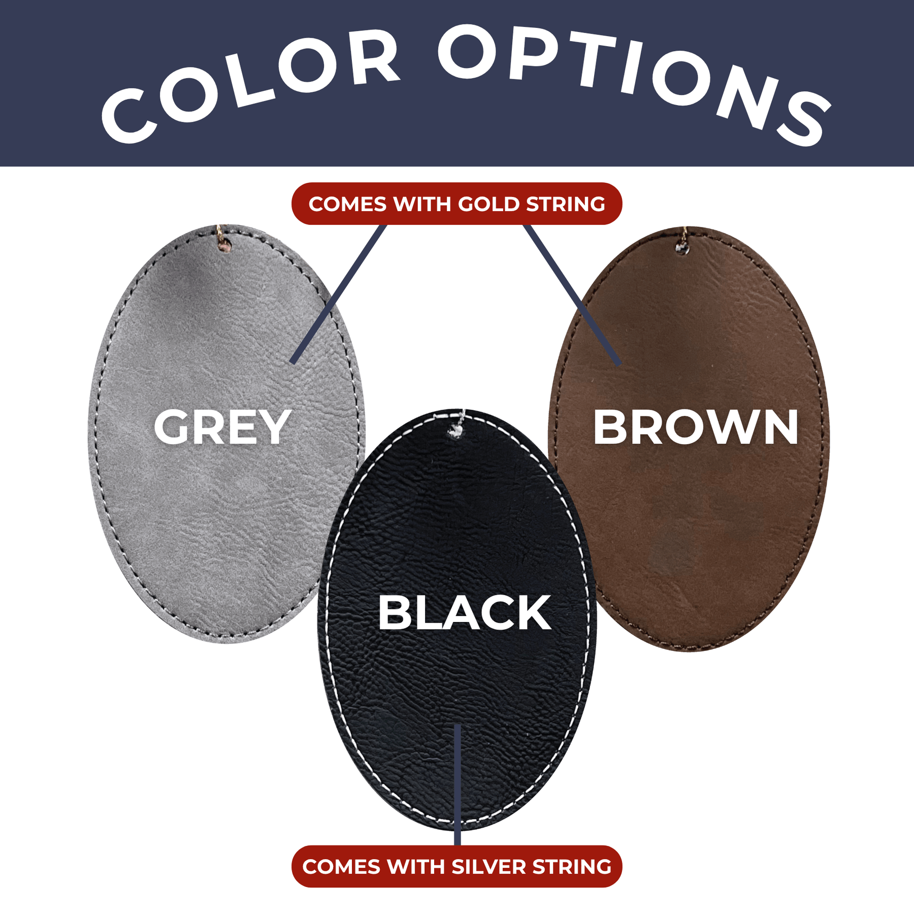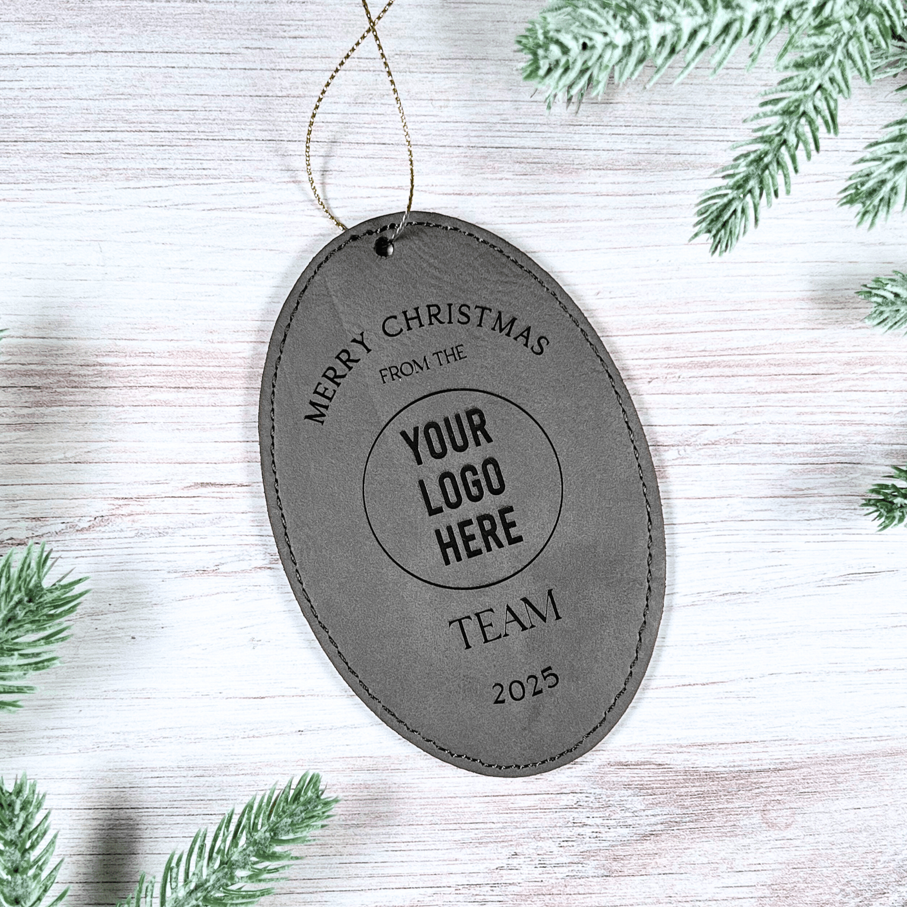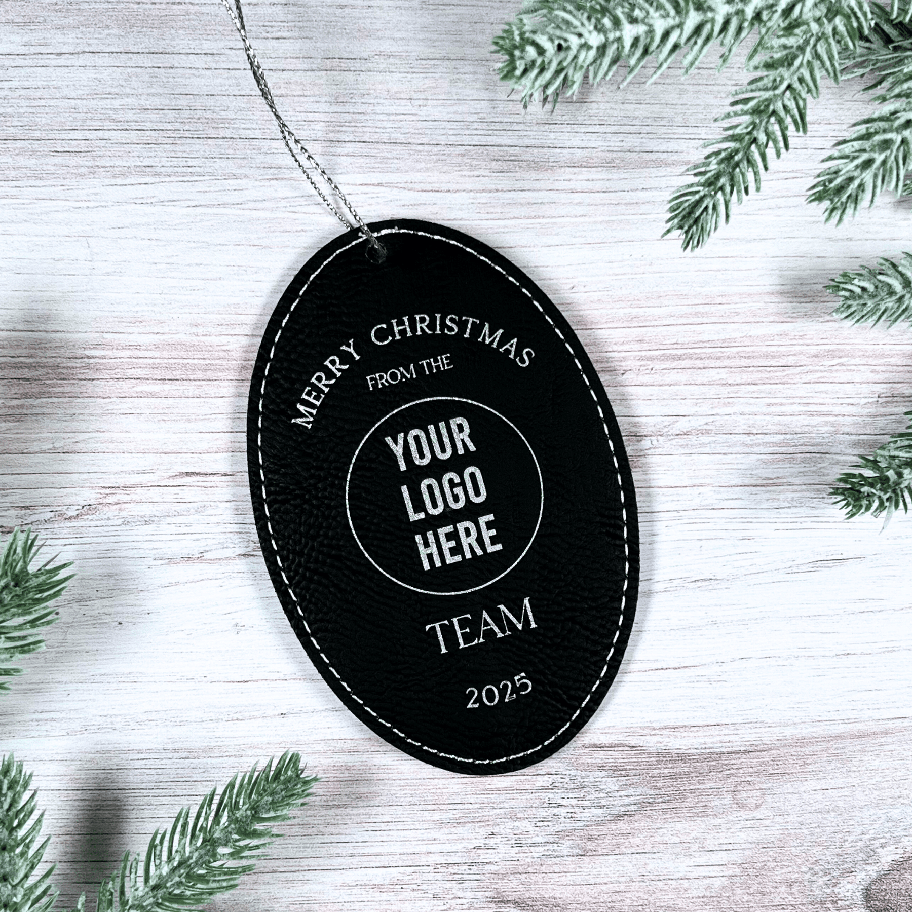 Choose from black, brown, or grey faux leather, each engraved for maximum clarity. These ornaments are lightweight, durable, and perfect for branded holiday mailers or seasonal appreciation gifts.