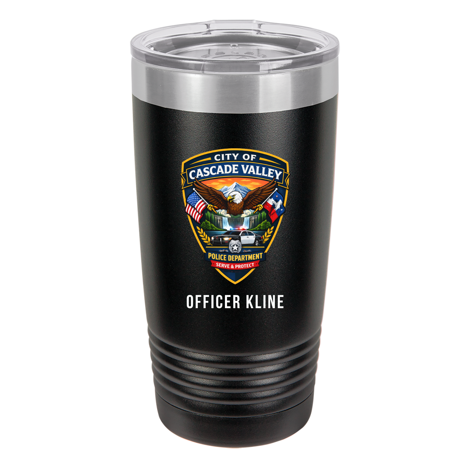 Carry your badge with pride in our Custom Police Department Tumbler — laser engraved right here in our Reading, Pennsylvania studio with your department's patch and name or rank. No stickers. No vinyl. No peeling or fading. Just a permanent, professional engraving that lasts as long as your career.