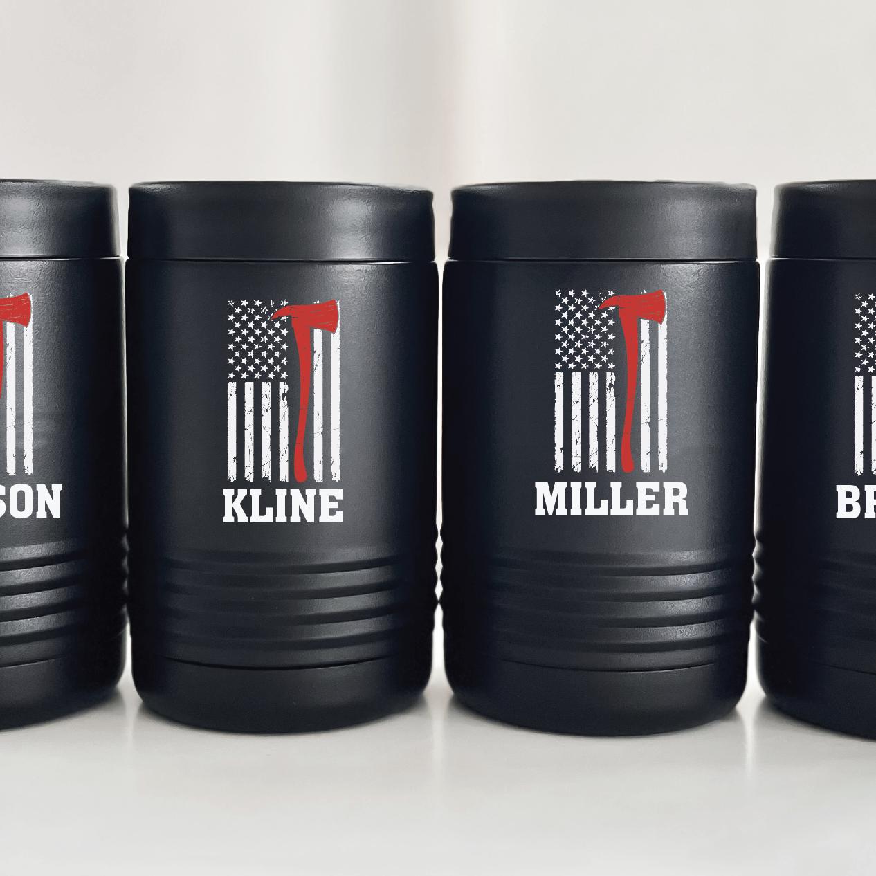 Each can cooler is UV printed in our Pennsylvania studio with a bold firefighter flag and red axe design. Crafted from stainless steel, these Polar Camel beverage holders feature double-wall, vacuum insulation to keep drinks cold or hot for hours. The screw-on rubber top makes it easy to insert and secure your favorite drink — whether at the station, the backyard, or on the go.